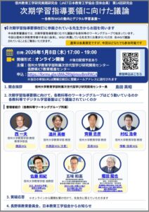信州⼤学教育学部附属次世代型学び研究開発センターでは、信州教育⼯学研究実践研究会第14回研究会において、次期学習指導要領改訂に参画されている先⽣⽅からお話を伺い、議論する機会を設けます。通常は会員限定ですが、今回はどなたでも参加可能です。次期学習指導要領の動きを知る機会になると思います。よろしければ、ぜひご参加ください。
