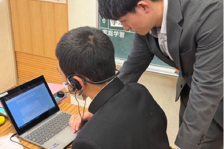 授業中は、ALTや教科担任が教室内を巡回し、AIとのやり取りの様子を確認しながら、発音やイントネーション、表現の選び方などについて必要に応じた個別指導を行いました。AI任せにするのではなく、人による即時的な助言を組み合わせることで、学習の質を高めることができました。