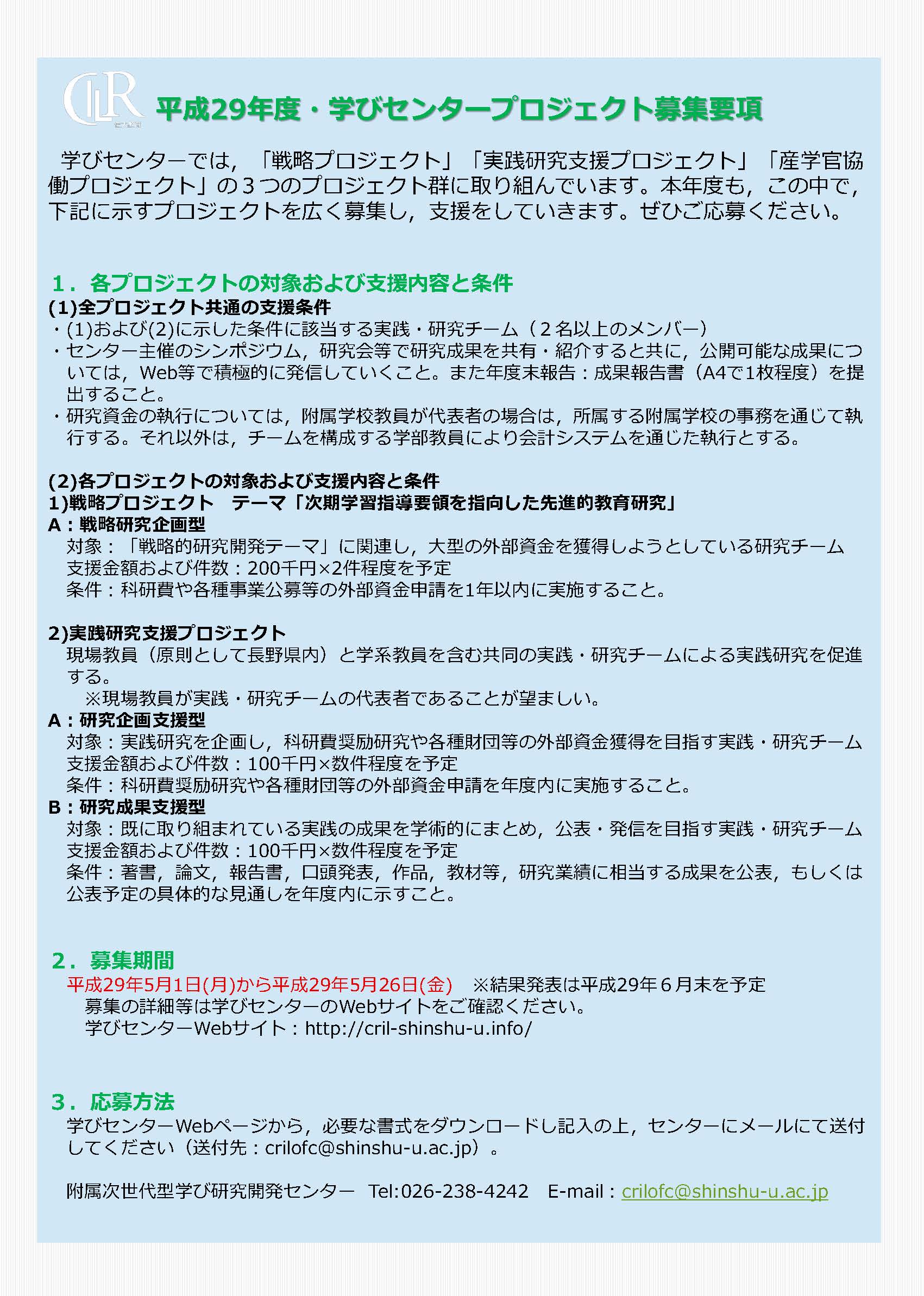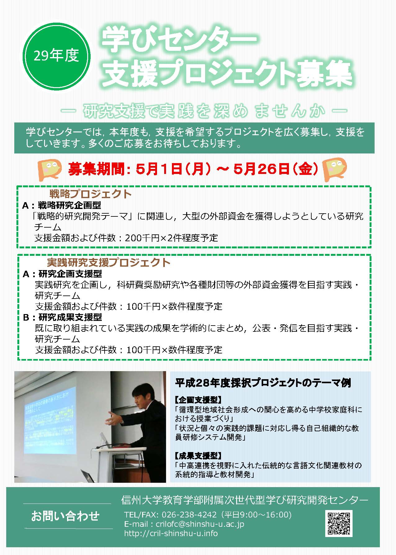 平成29年度学びセンター支援プロジェクト募集はこちら