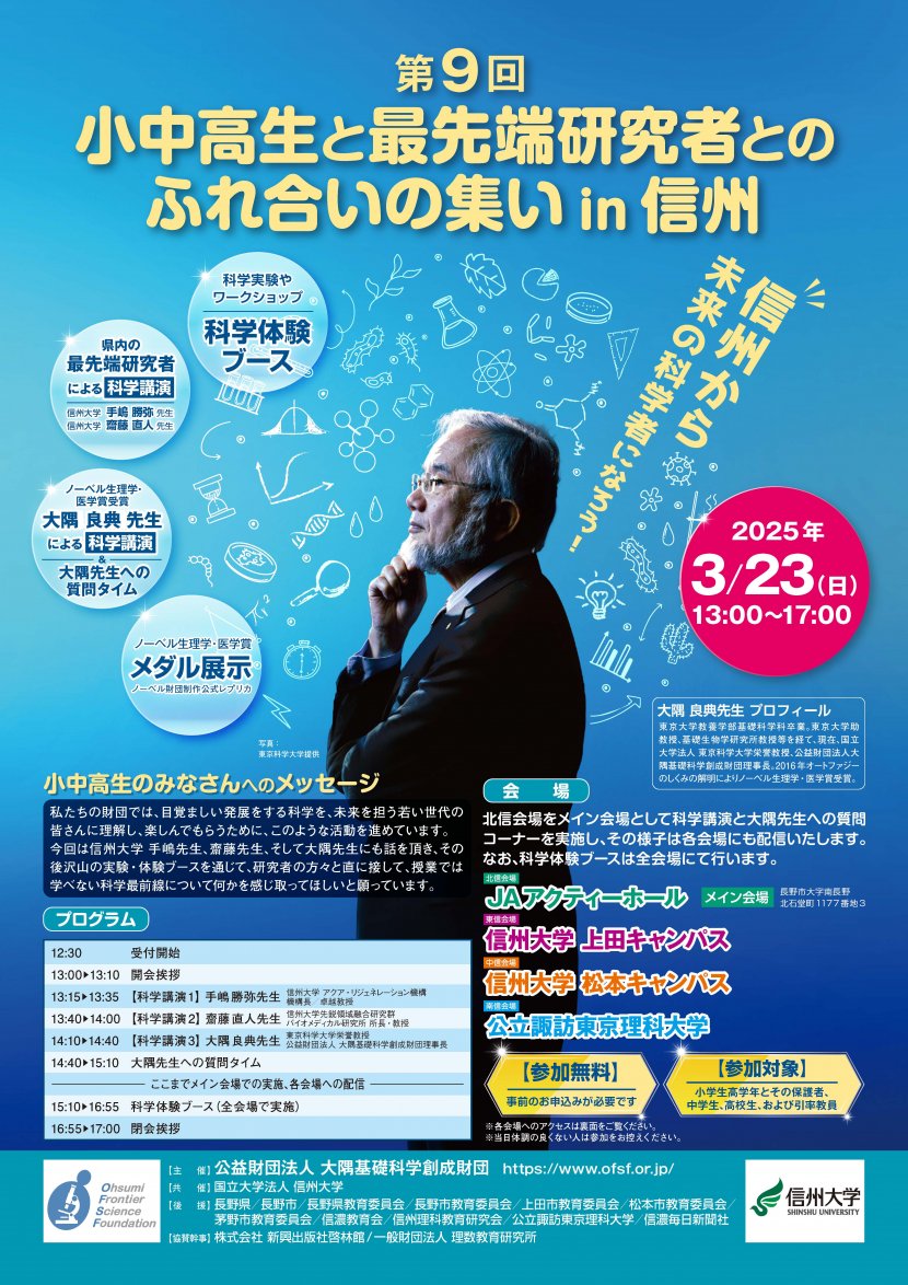 主催:信州大学後援:長野県教育委員会,長野市教育委員会,アソビズムほか●申込...