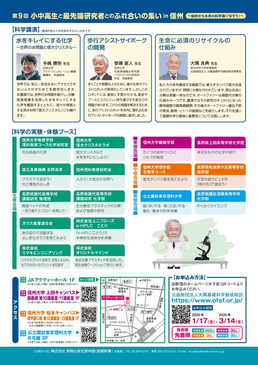 3月23日(日)小中高生と最先端研究者とのふれ合いの集いin信州