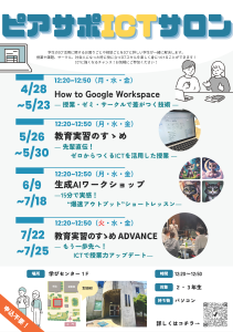 ピアサポーター制度に関連して、授業や課題、サークル、社会人になった時に役立つICTスキルを楽しく身につけることができる「ピアサポICTサロン」を企画しました。